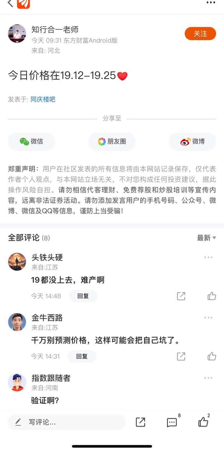 温馨提示: 1.根据《证券法》规定,禁止编造、传播虚假信息或者误导性信息,扰乱证券市场;2.用户在本社区发表的所有资料、言论等仅代表个人观点,与本网站立场无关,不对您构成任何投资建议。用户应基于自己的独立判断,自行决定证券投资并承担相应风险。《东方财富社区管理规定》