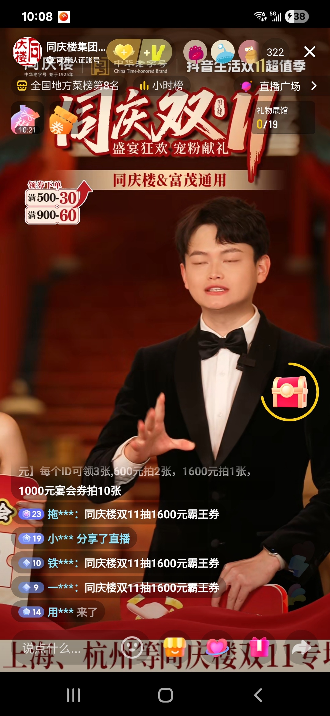 $同庆楼(SH605108)$ 去看看直播。11活动了。加加人气