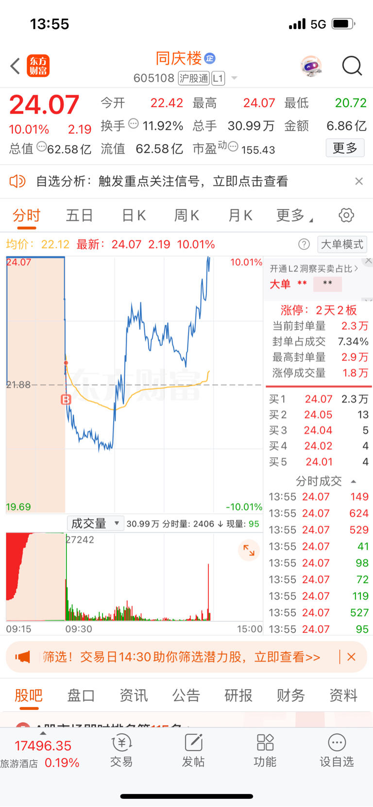 $同庆楼(SH605108)$ 今天真的是要看吐
