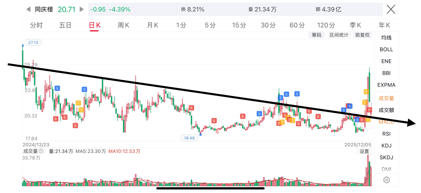 $同庆楼(SH605108)$ 突破下跌趋势,回调未破趋势线,下周必涨