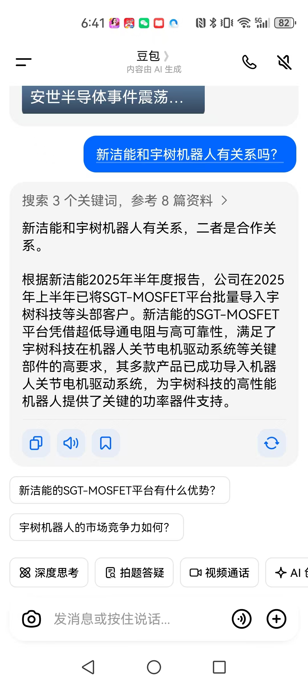 新洁能是高科技企业(芯片),科技含量高,和宇数机器人合作