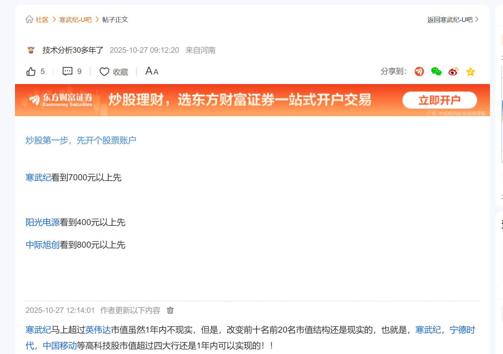 我就是个技术爱好者,老股评人,我发的贴很多,评论指数和热点的帖子在“上证指数吧”有;;评论各股在阳光电源,寒武纪,隆基绿能股吧都有,见下,