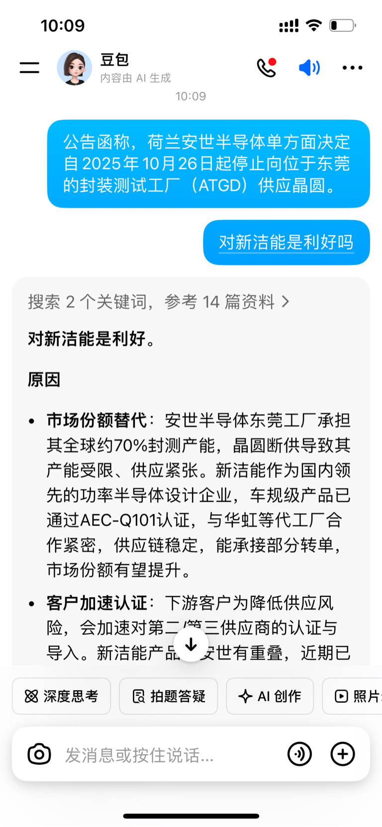 $新洁能(SH605111)$ 豆包说这是利好,周一能给个肉多多吗