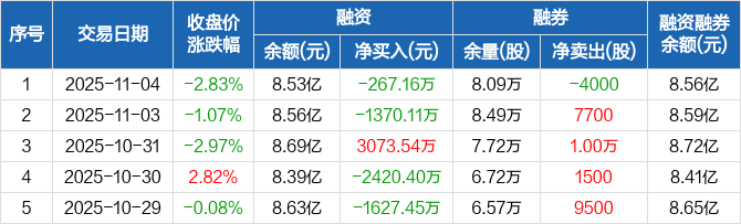 新洁能:融资净偿还267.16万元,融资余额8.53亿元(11-04)