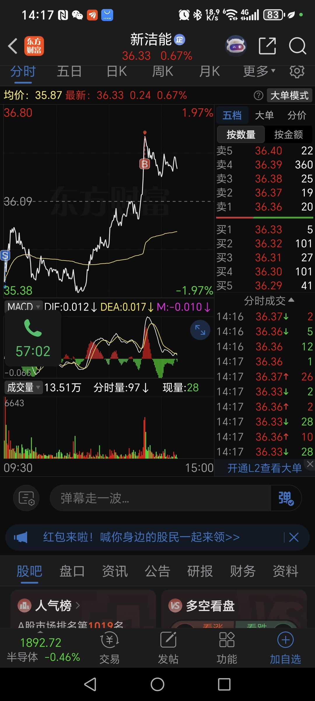 $新洁能(SH605111)$ 刚开始学炒股,请问一下在座各位,为什么分时线要写个SB骂我