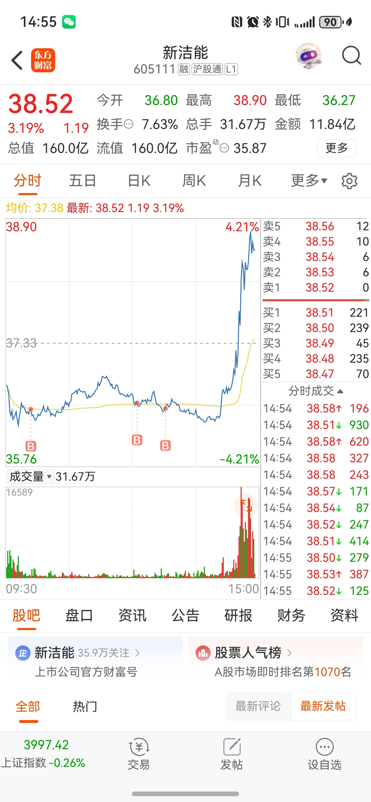 $新洁能(SH605111)$ 今天发生了啥,让我如此好运