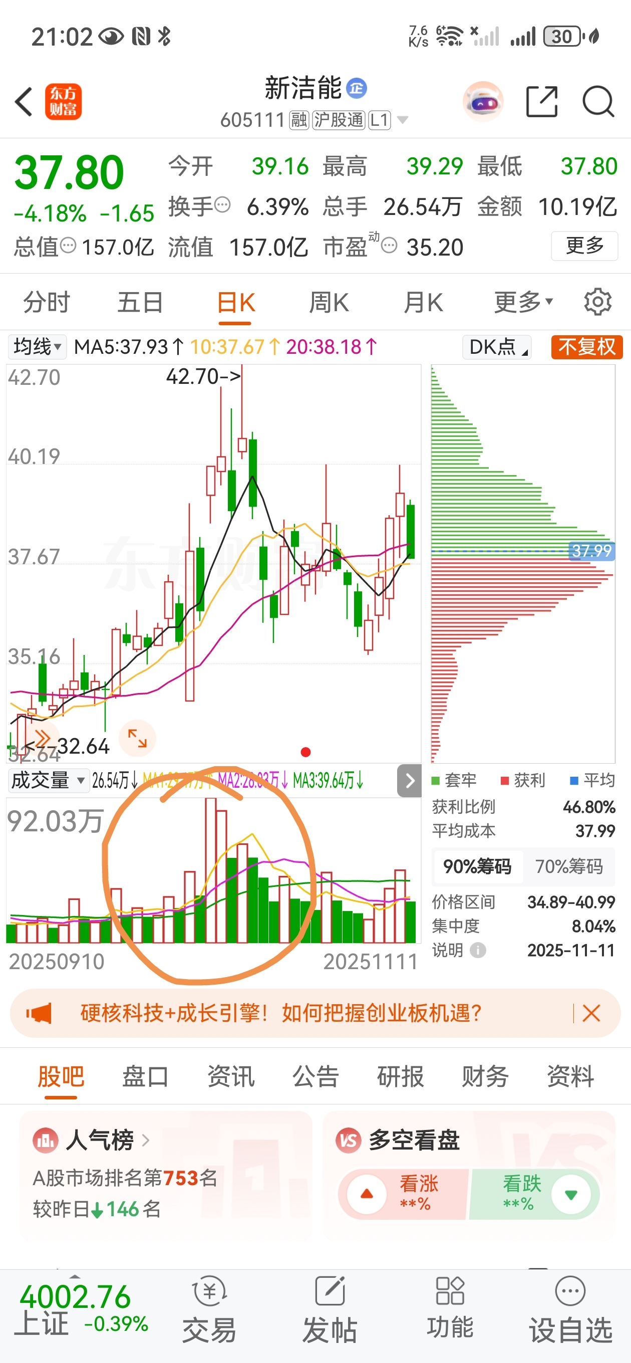 $新洁能(SH605111)$ 这两天进来的,一动也没动。唯不好的是今天没守住38.11。周三高开了,还是有希望。如果低开,要看十五分钟能不能收起来