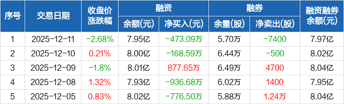 新洁能:融资净偿还473.09万元,融资余额7.95亿元(12-11)