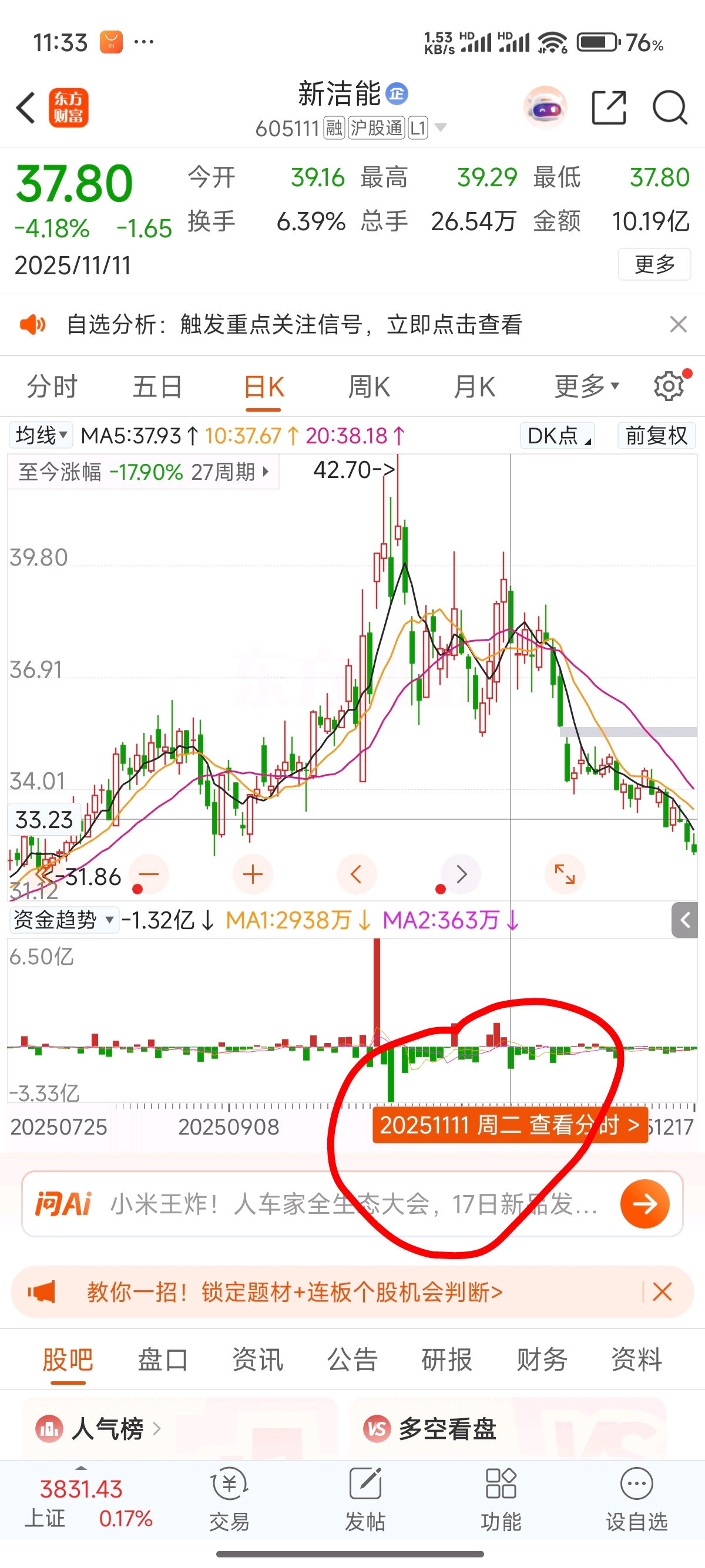 $新洁能(SH605111)$ 什么概念11.11号开始阴跌到现在,一个月了。牛儿逼之阿。