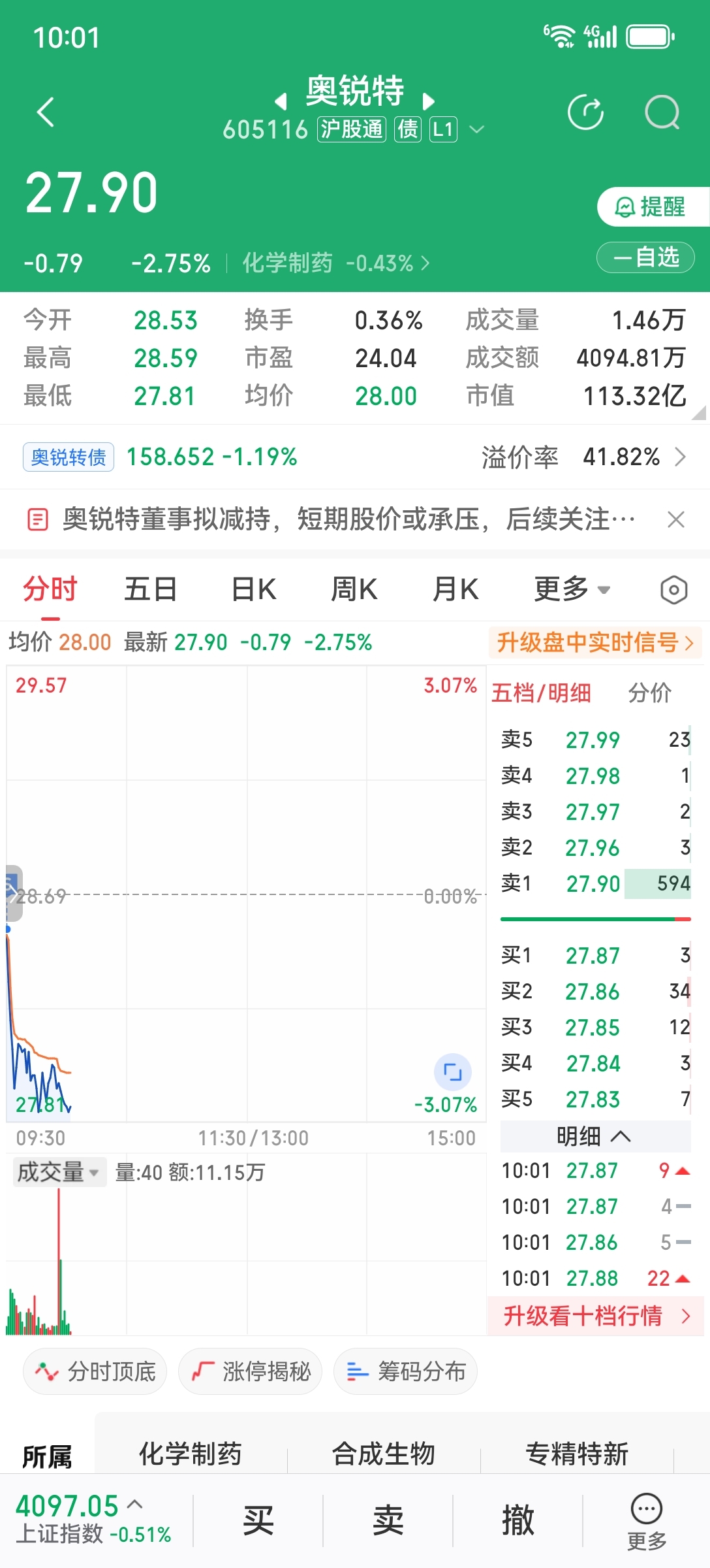 $奥锐特(SH605116)$ 多谢!只亏了1个点,的周五进的晚上就减持,还以为要亏三五个点,多谢!