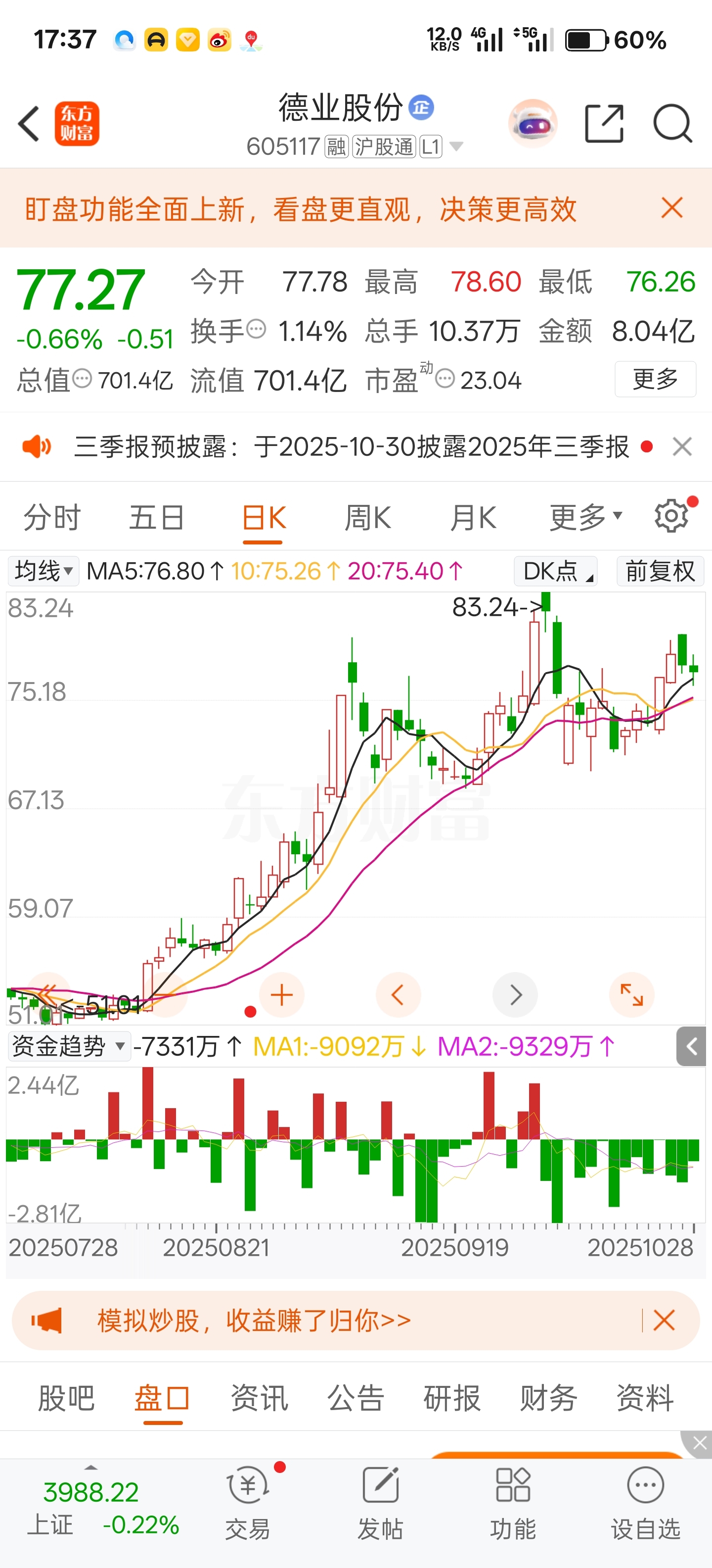 $德业股份(SH605117)$ 就没哪次有这么大的出货量,整整一个月全都在出货,而且是在相对低位出货,阳光都是拉到高位跑的,唯独德业在低位跑,10月跑了15亿