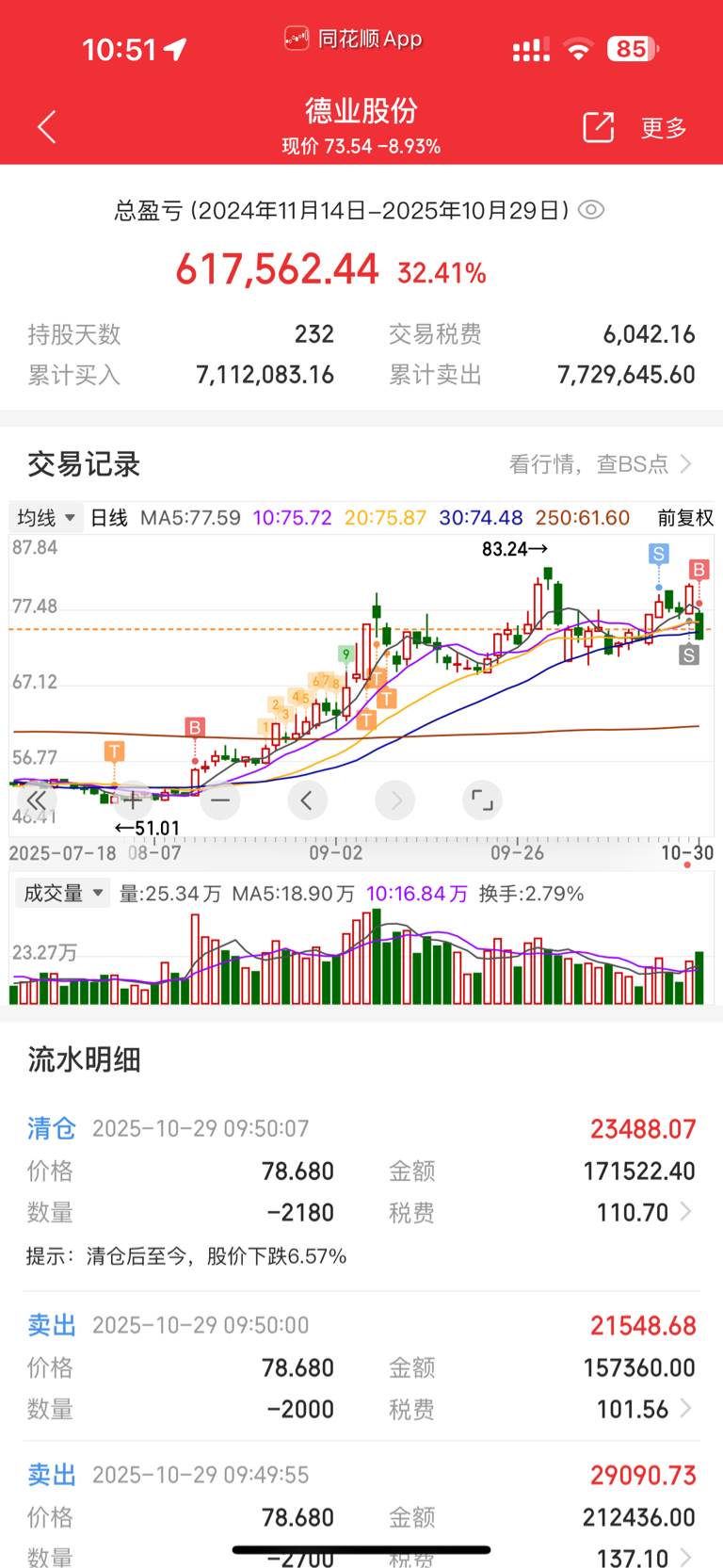 $德业股份(SH605117)$ 从24年10月被套,到今年4月底部加仓百万,最后赚的也不多,昨天全部卖了,第三季度的海关数据在之前做了一些功课,知道不是很好,加上去年3季报高基数,但是怎么说呢,资金对于德业真的很严格,毛利那么高,盈利那么稳,你要求高那么你也要涨的高,不及预期你猛砸也行,涨也不猛,一点点不及预期就猛砸,主力说实话格局太小,你自己都想把钱赚了,最后你没人气,你能赚到钱吗?