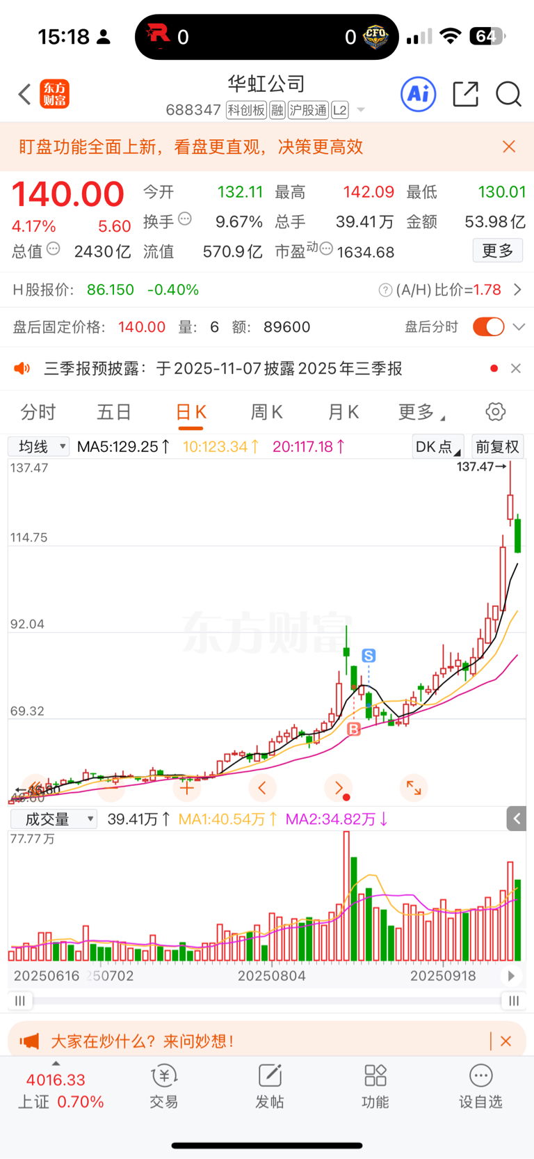 抄底有性价比,我69元持有华虹,以为短期高位卖了,原来低位,涨到140,现在德业