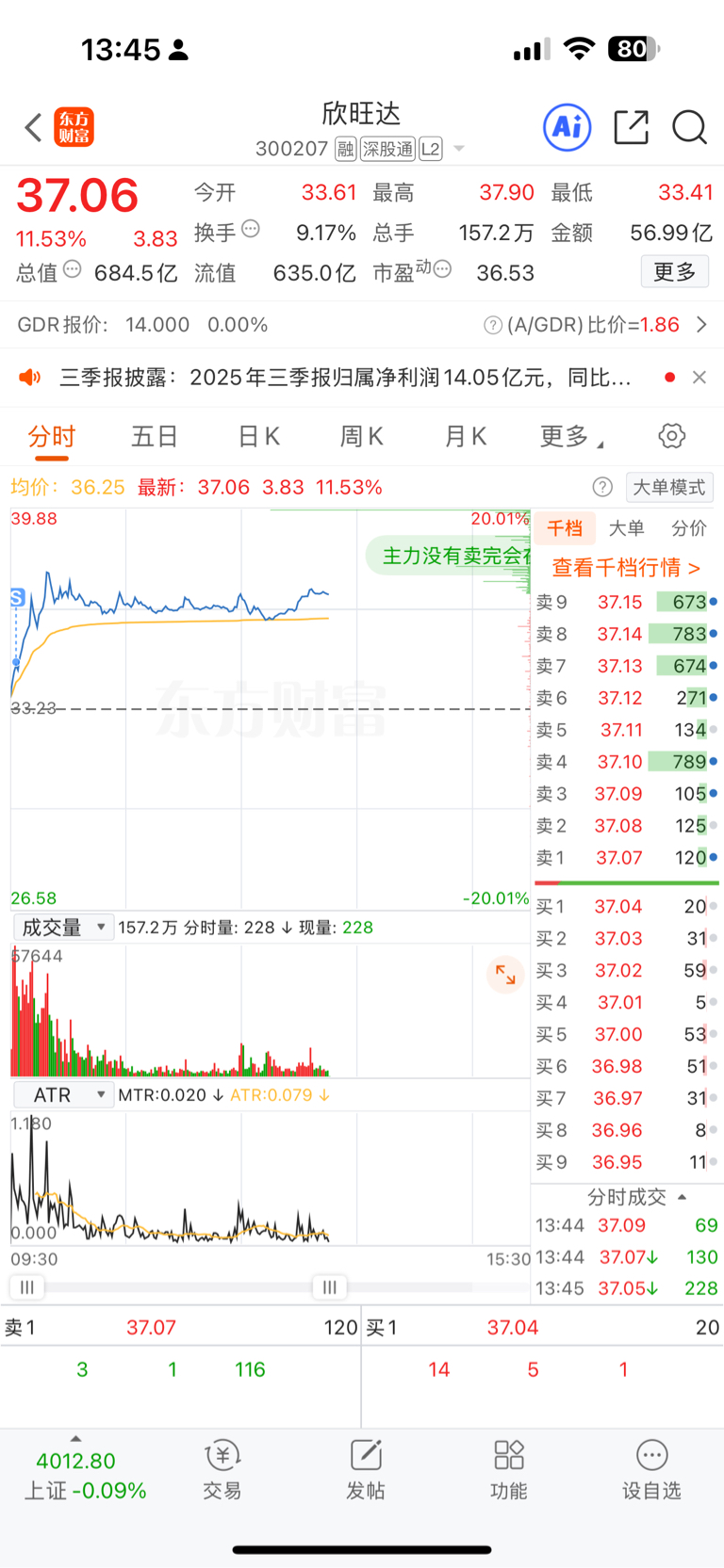 今天低位卖了欣旺达,买了德业,不要让我失望