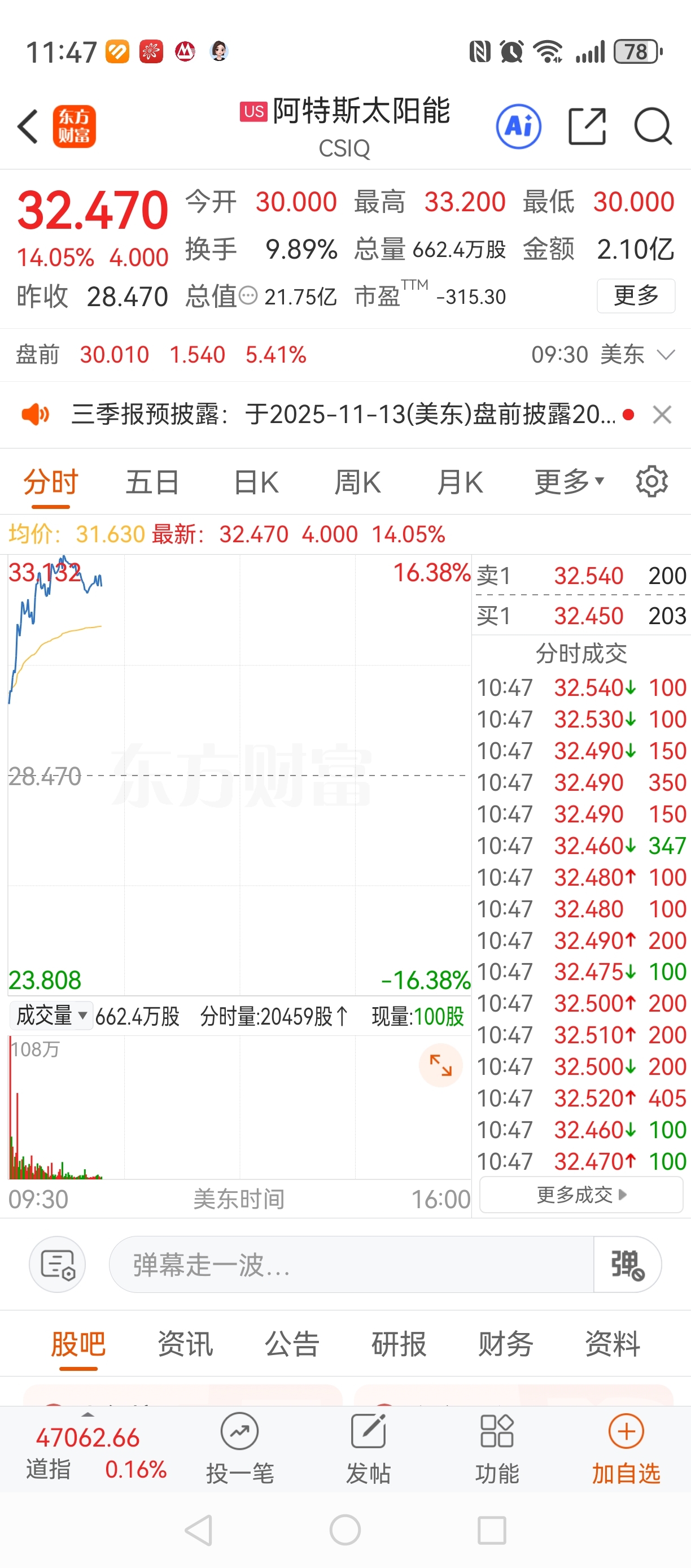 阿特斯太阳能又大涨特涨了。