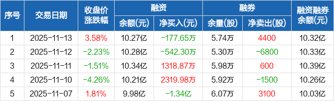 德业股份:融资净偿还177.65万元,融资余额10.27亿元(11-13)