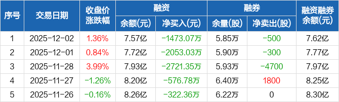 德业股份:融资余额7.57亿元,创近一年新低(12-02)