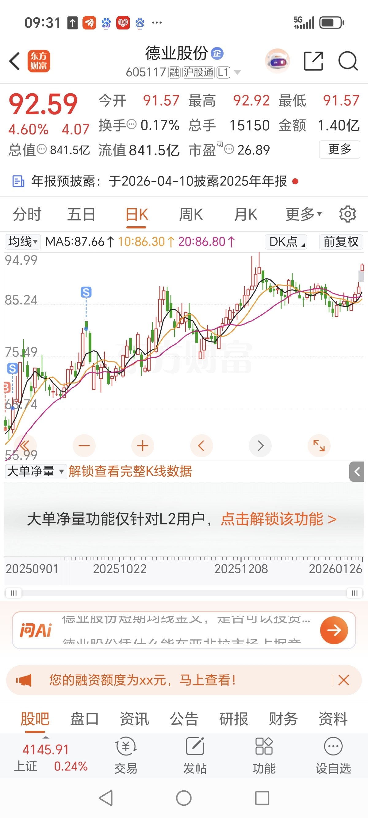 $德业股份(SH605117)$