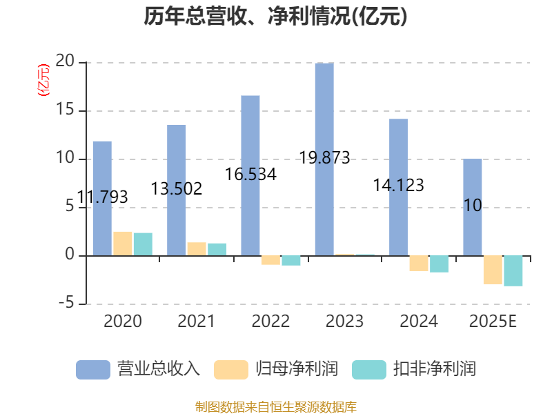 中证智能财讯四方新材(605122)1月26日晚间披露2025年度业绩预告,预计2025年实现营业收入10亿元;归母净利润亏损3亿元,上年同期亏损1.64亿元;扣非净利润亏损3.2亿元,上年同期亏损1.76亿元。以1月26日收盘价计算,四方新材目前市盈率(TTM)约为-8.09倍,市净率(LF)约1.21倍,市销率(TTM)约2.43倍。