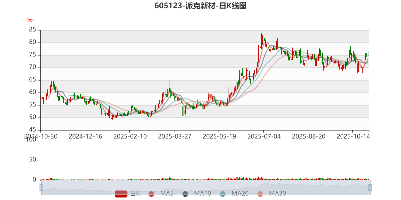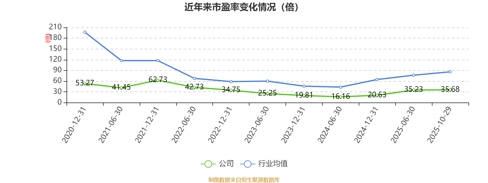 以10月29日收盘价计算,派克新材目前市盈率(TTM)约为35.68倍,市净率(LF)约1.97倍,市销率(TTM)约2.66倍。