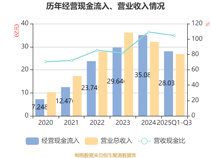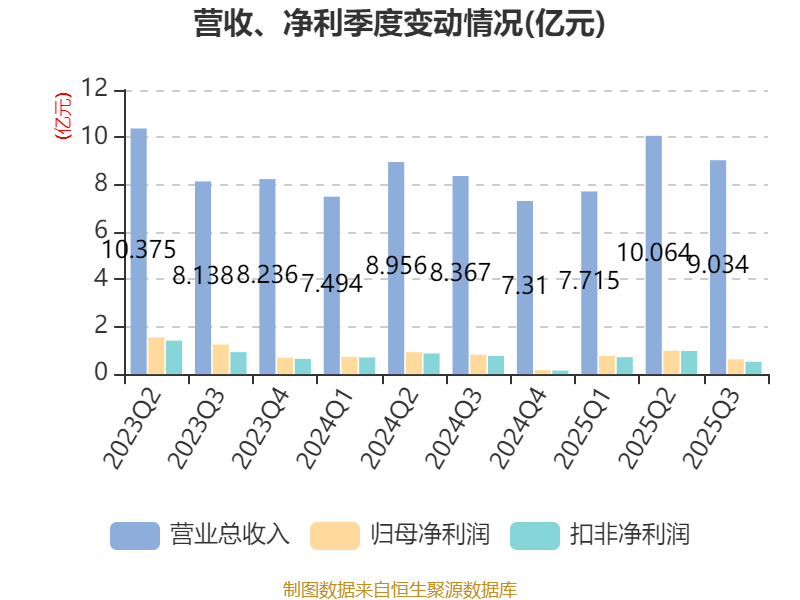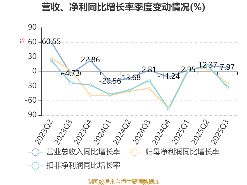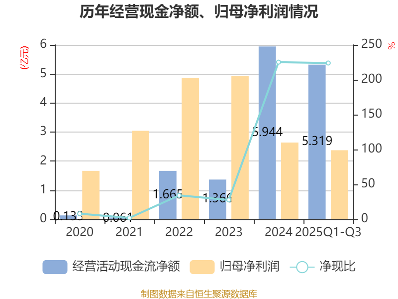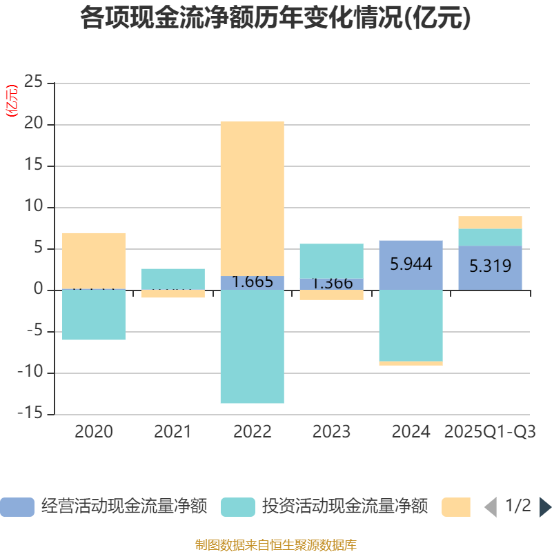 2025年前三季度,公司经营活动现金流净额为5.32亿元,同比增长32.55%;筹资活动现金流净额1.52亿元,同比增加1.7亿元;投资活动现金流净额2.07亿元,上年同期为-6.72亿元。