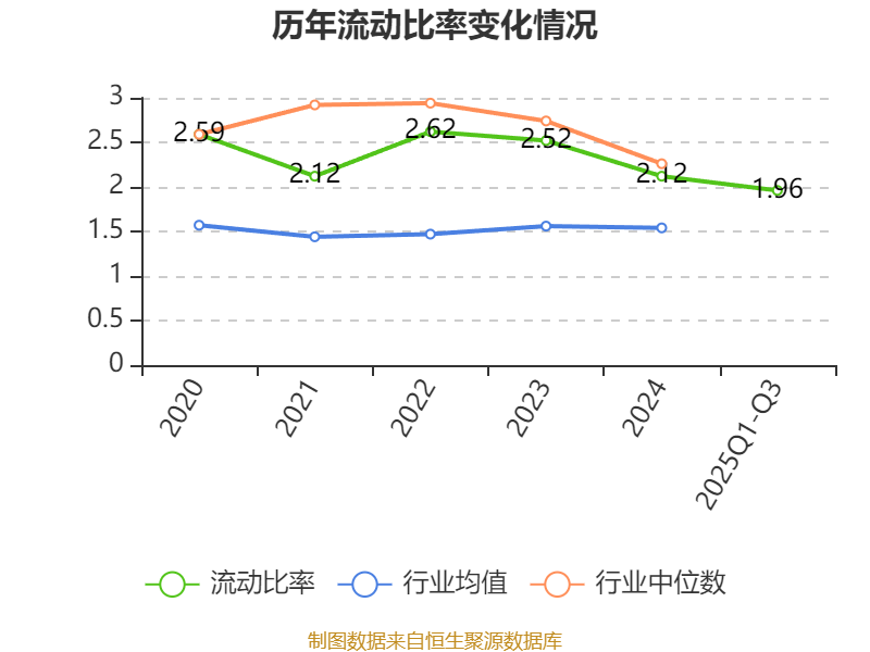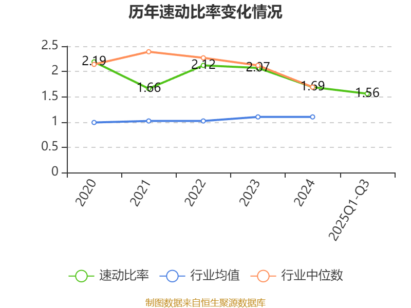 2025年前三季度,公司流动比率为1.96,速动比率为1.56。