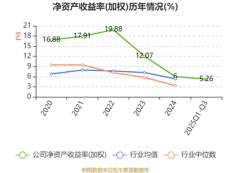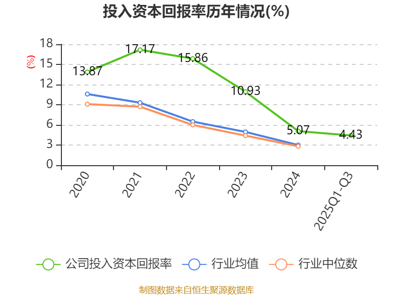 盈利能力方面, 2025年前三季度公司加权平均净资产收益率为5.26%,同比下降0.42个百分点。公司2025年前三季度投入资本回报率为4.43%,较上年同期下降0.39个百分点。