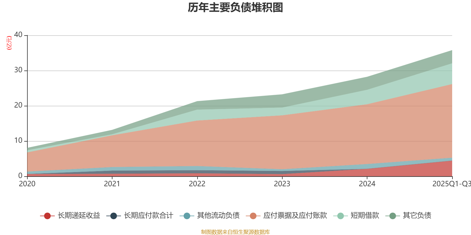 负债重大变化方面,截至2025年三季度末,公司长期递延收益较上年末增加111.2%,占公司总资产比重上升2.5个百分点;应付票据及应付账款较上年末增加23.12%,占公司总资产比重上升2.03个百分点;短期借款较上年末增加43.91%,占公司总资产比重上升1.53个百分点;其他流动负债较上年末减少38.91%,占公司总资产比重下降0.87个百分点。