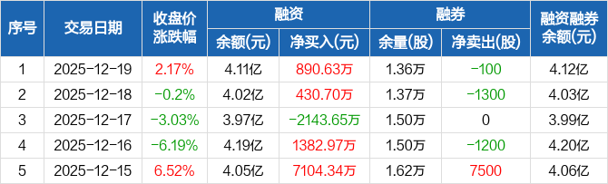 派克新材:融资净买入890.63万元,融资余额4.11亿元(12-19)