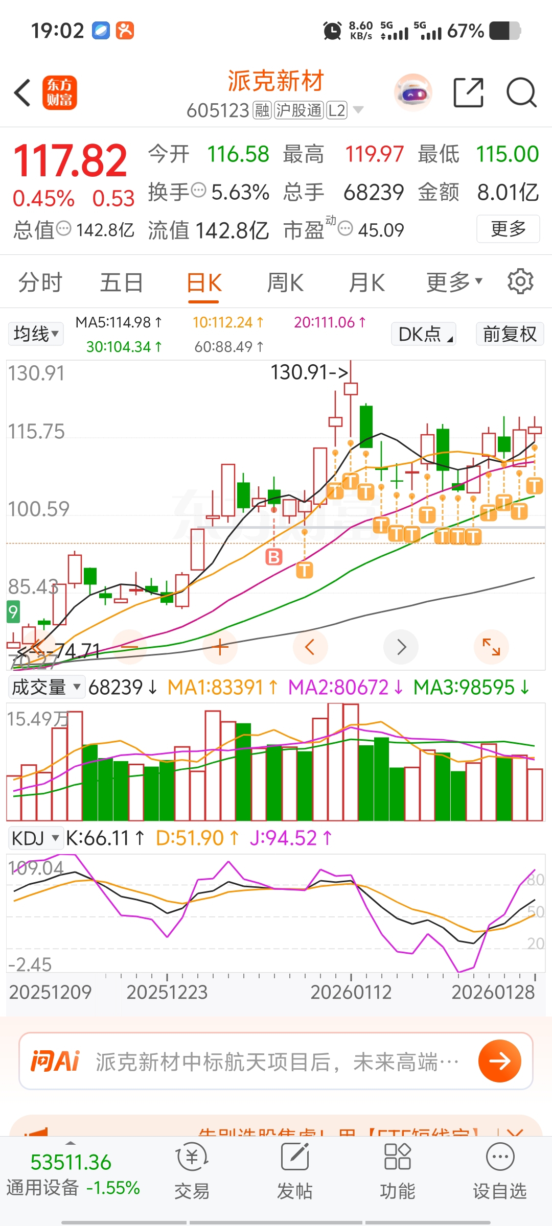 $派克新材(SH605123)$ 今天的派克新材走势,最终还是被我说中一半有多,走势确实很拉胯。明天周四,再次预言一下派克还是会继续低开低走的一天