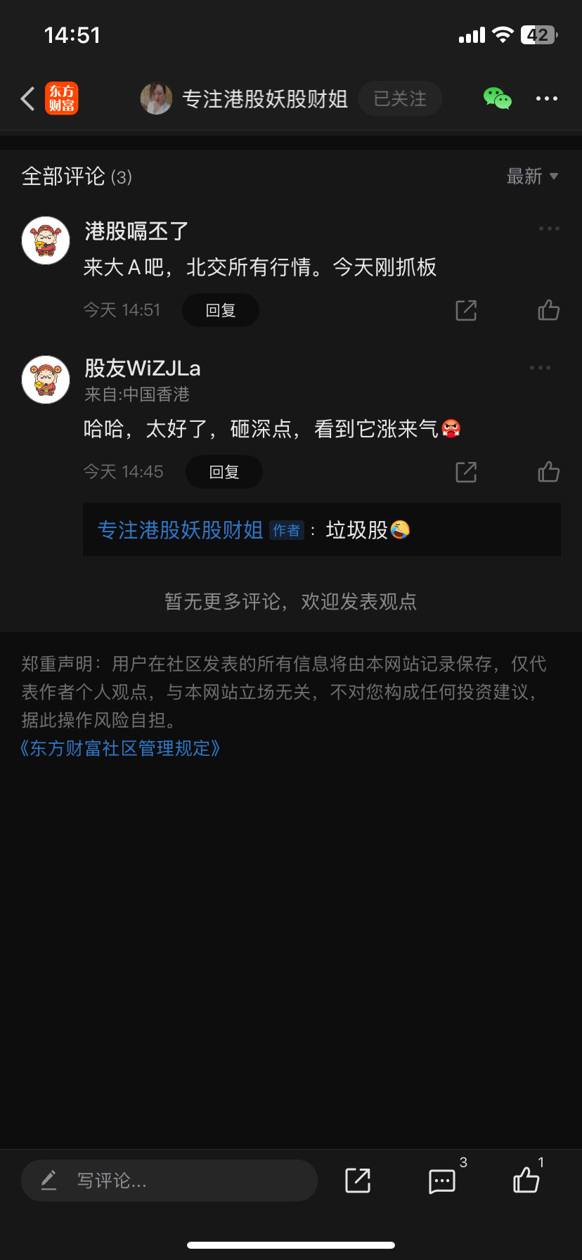 温馨提示: 1.根据《证券法》规定,禁止编造、传播虚假信息或者误导性信息,扰乱证券市场;2.用户在本社区发表的所有资料、言论等仅代表个人观点,与本网站立场无关,不对您构成任何投资建议。用户应基于自己的独立判断,自行决定证券投资并承担相应风险。《东方财富社区管理规定》