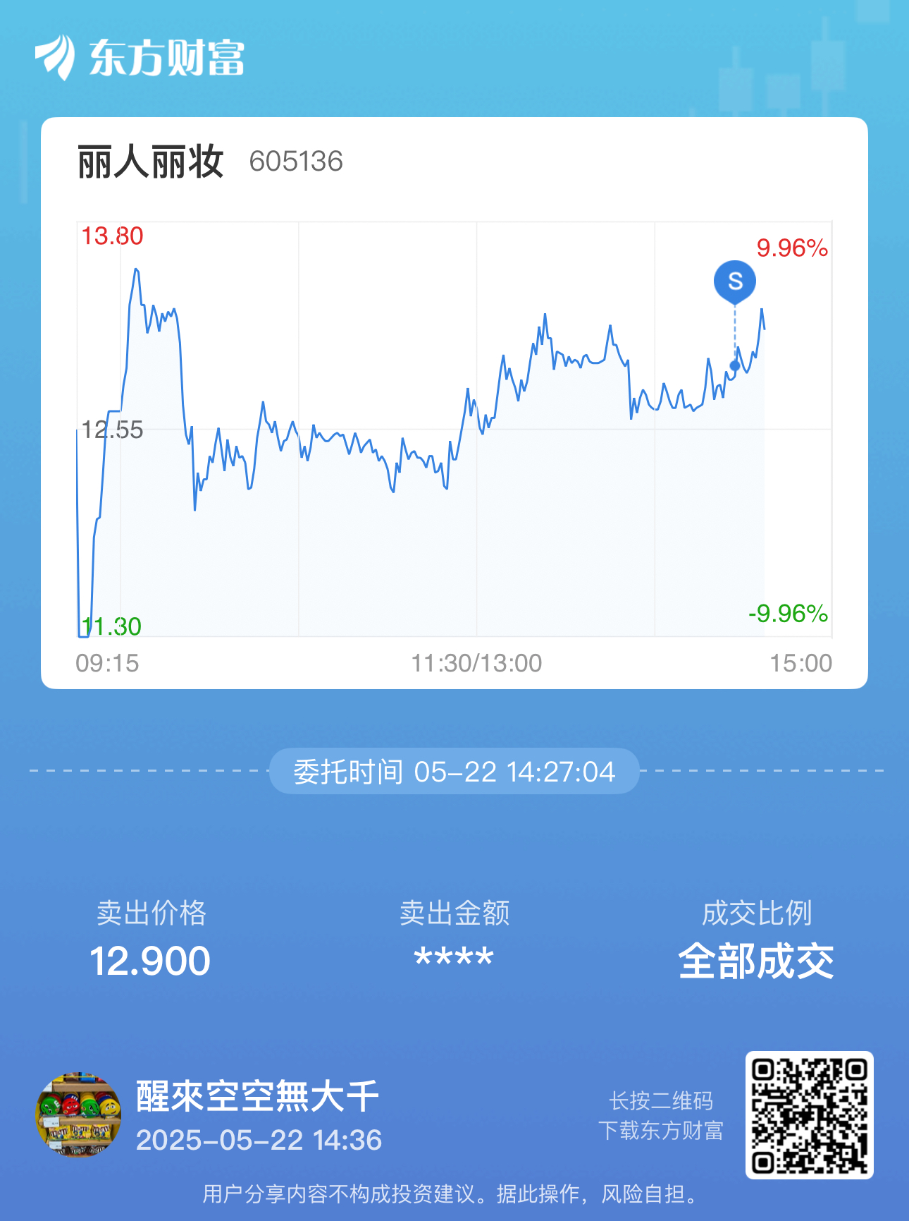 温馨提示: 1.根据《证券法》规定,禁止编造、传播虚假信息或者误导性信息,扰乱证券市场;2.用户在本社区发表的所有资料、言论等仅代表个人观点,与本网站立场无关,不对您构成任何投资建议。用户应基于自己的独立判断,自行决定证券投资并承担相应风险。《东方财富社区管理规定》