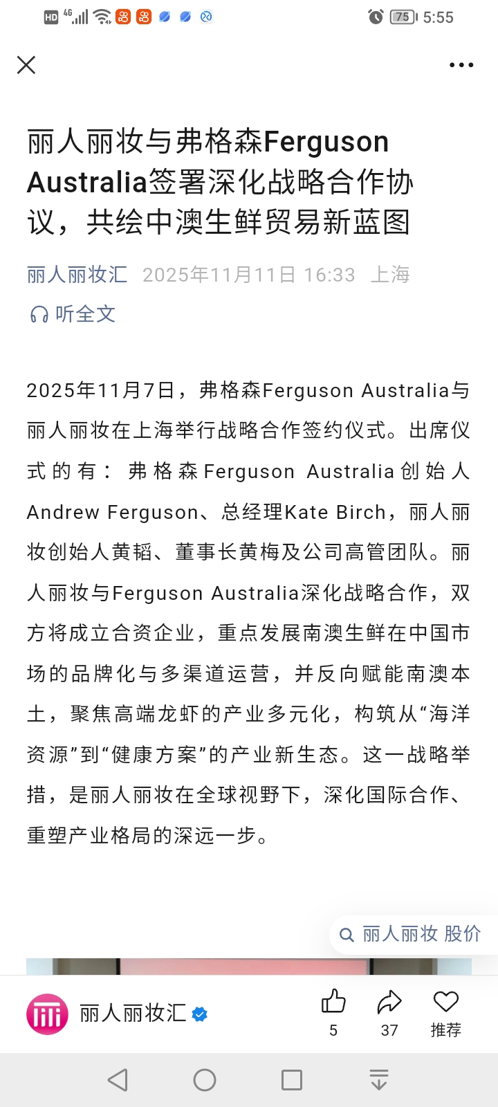 $丽人丽妆(SH605136)$ 澳洲大龙虾