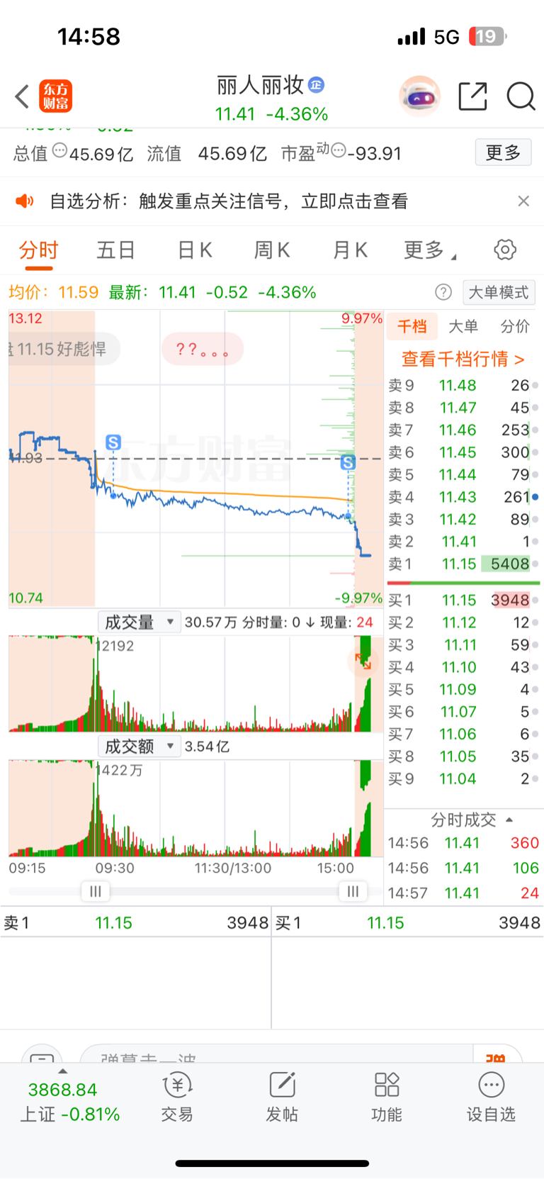 $丽人丽妆(SH605136)$ 虽然十分看好你,但是跌破五日线就要走这是纪律,也感谢你,在你身上赚了钱走的,只是大部分回吐了利润,祝里边的兄弟,一路长虹。