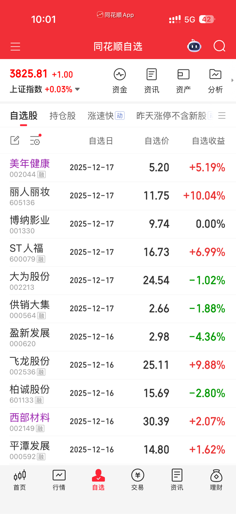 早上自选没进