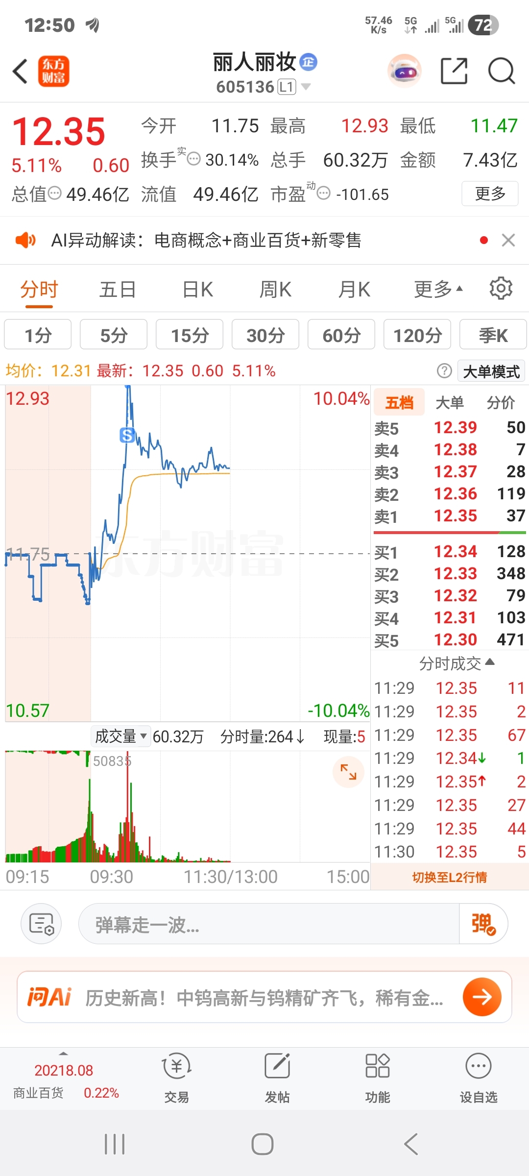 $丽人丽妆(SH605136)$ 早上涨停清仓,满仓进了新世界