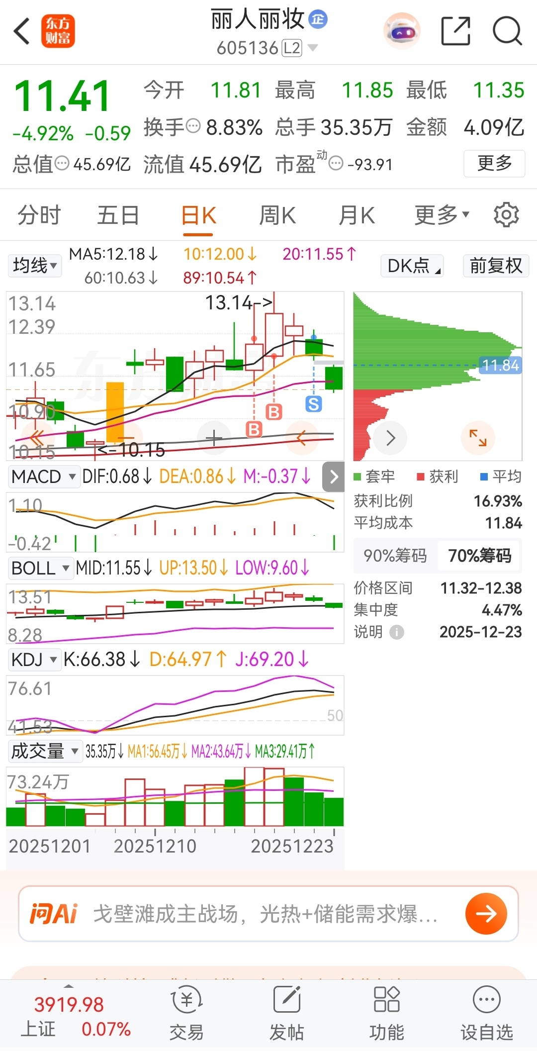 $丽人丽妆(SH605136)$ 只 赚了点手续费,吓死宝宝了!