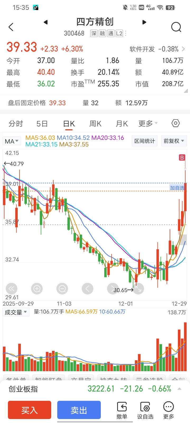 今天拿着“小三”底仓,没动(等大跌)。新搞了和顺电气、四方精创