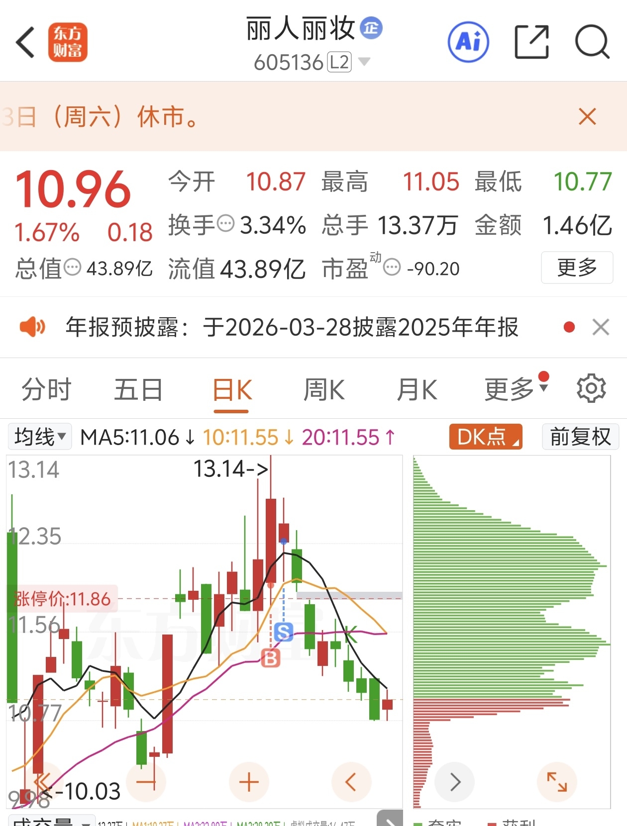 $丽人丽妆(SH605136)$ 臭主力,差点被你定格在1314!我不要和你1314。