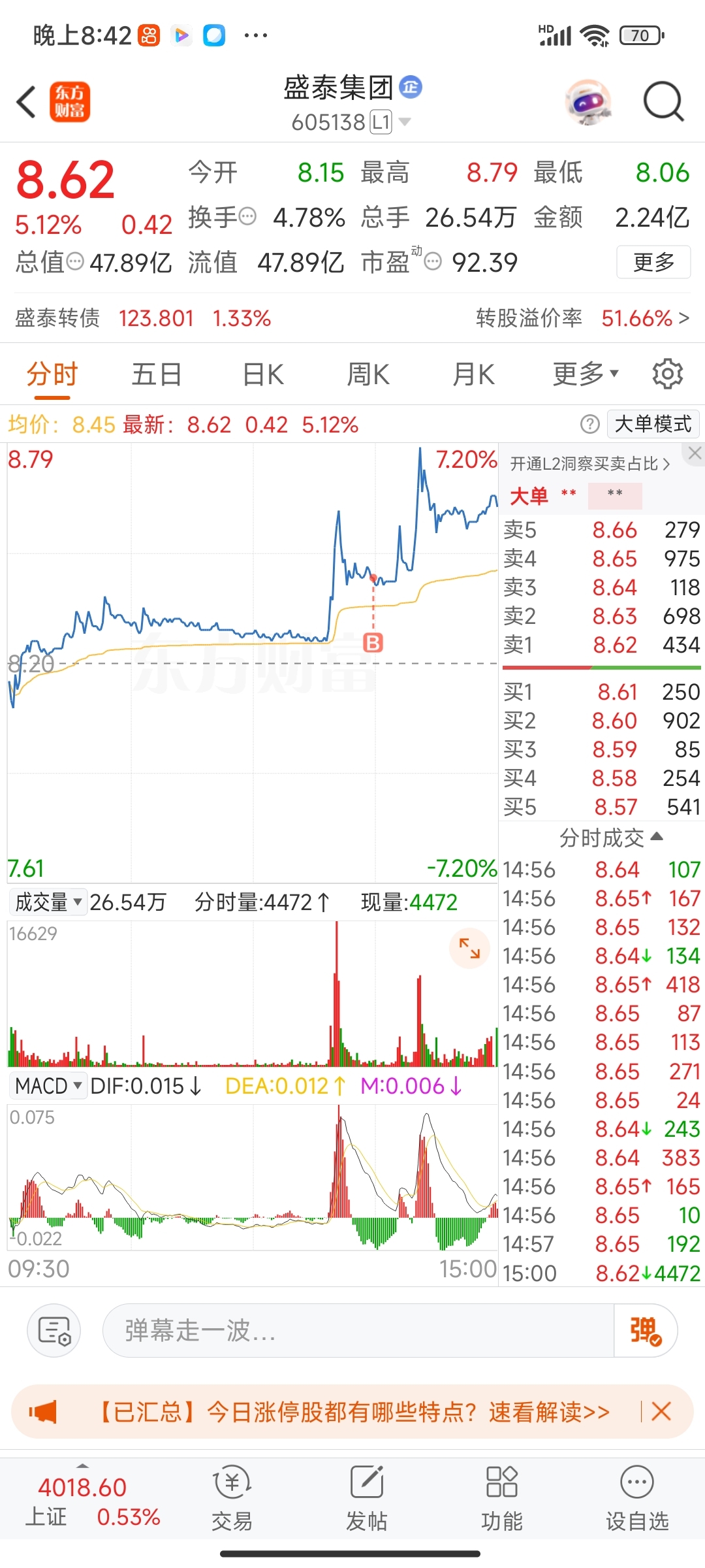 $盛泰集团(SH605138)$ 今天又买进来了