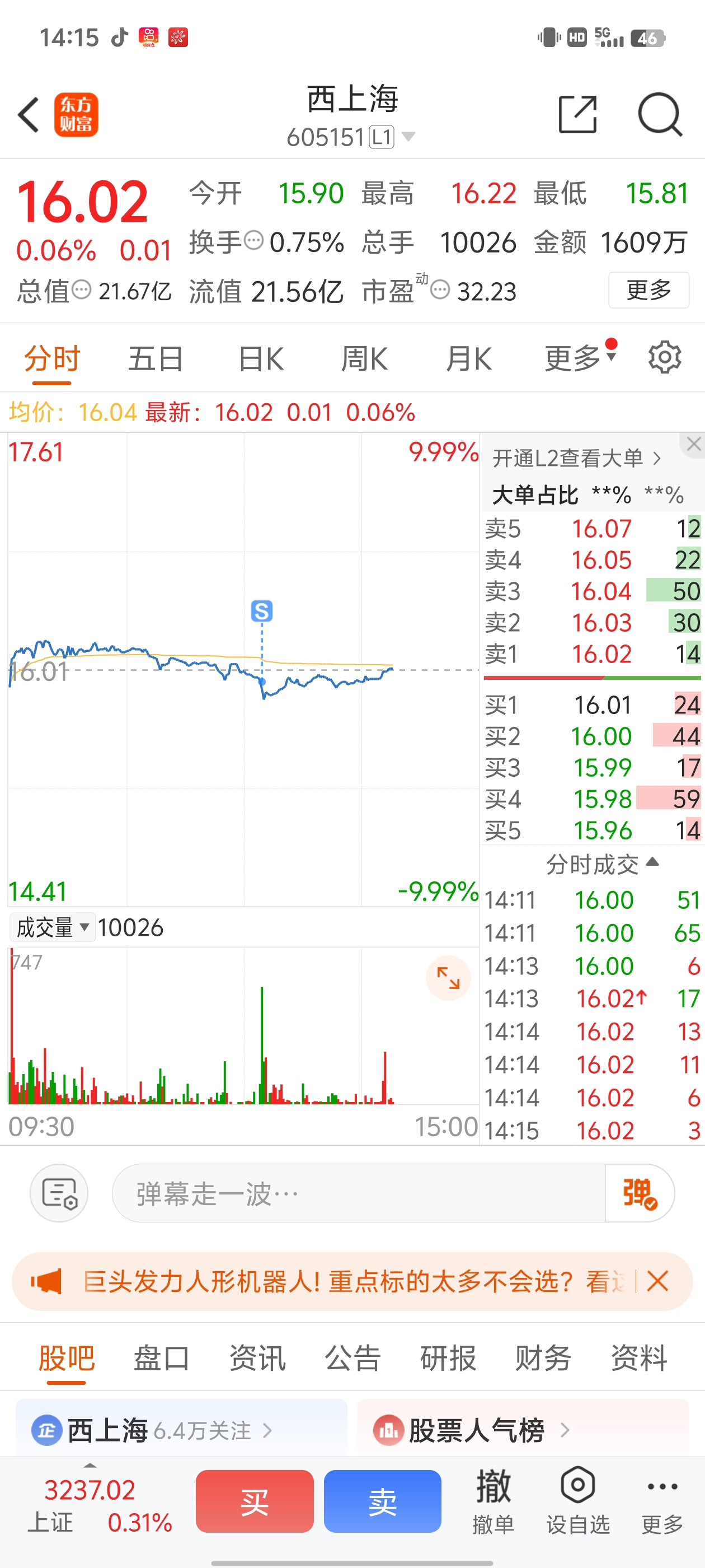 $西上海(SH605151)$ 2天亏4个点跑了唉#复盘记录#