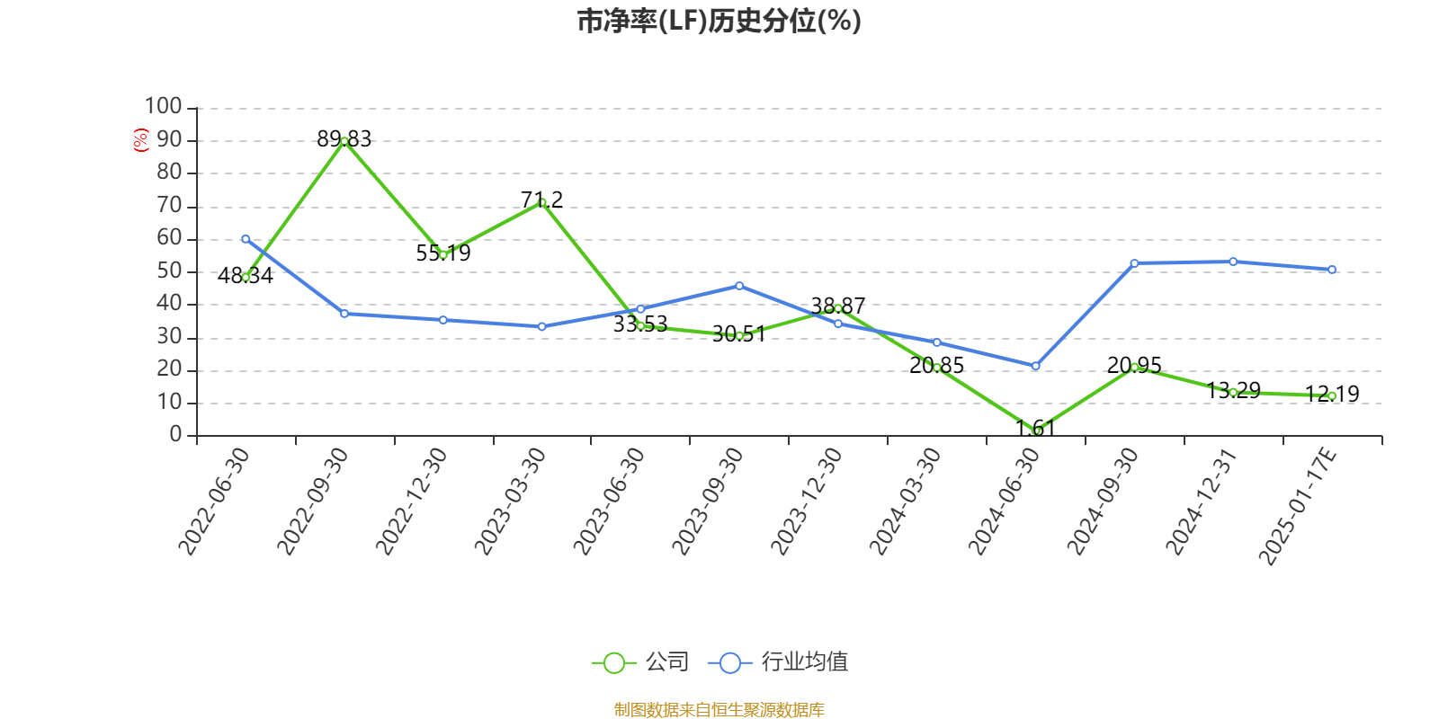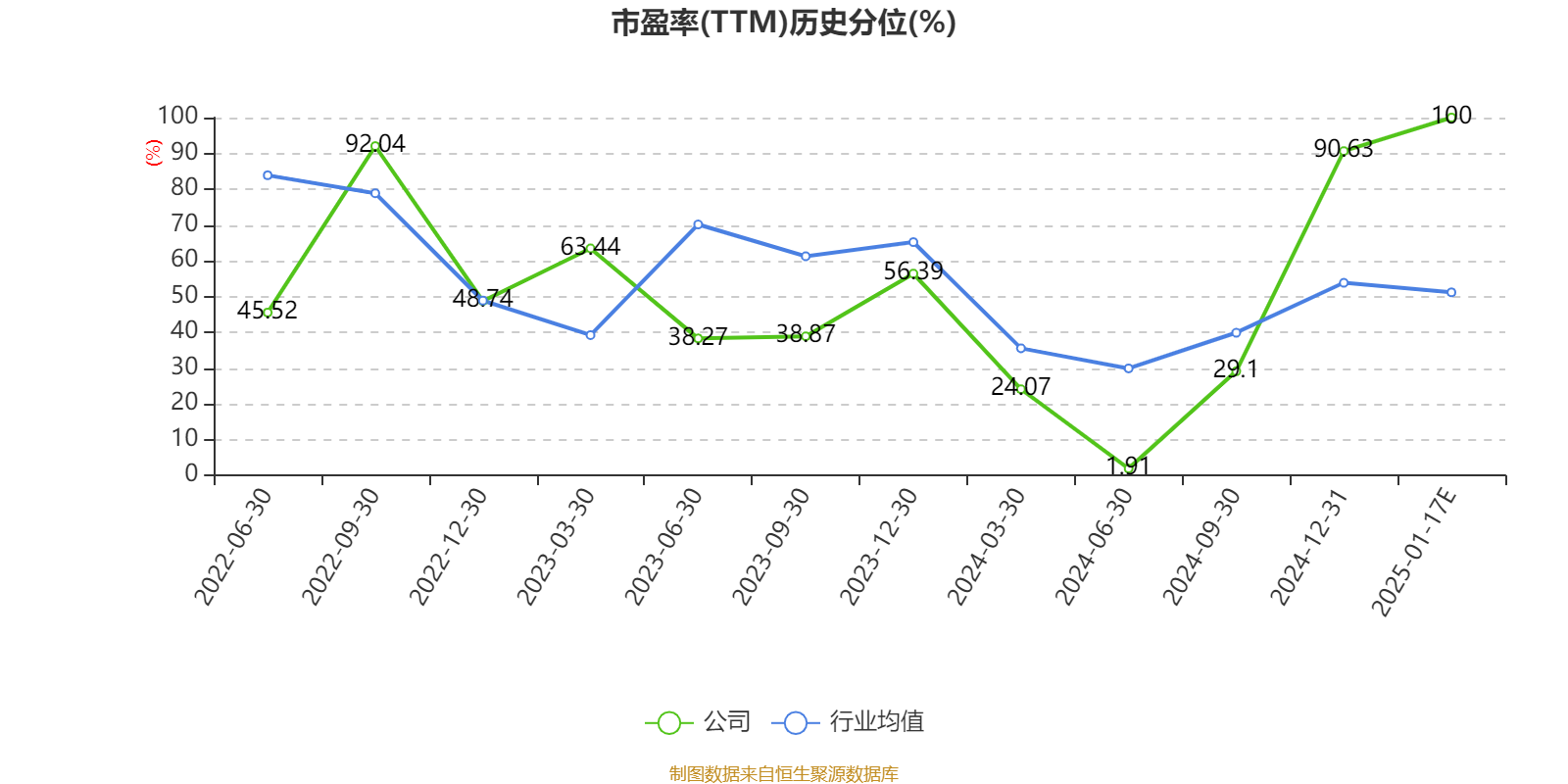 市盈率、市净率为负时,不显示当期分位数,会导致折线图中断。