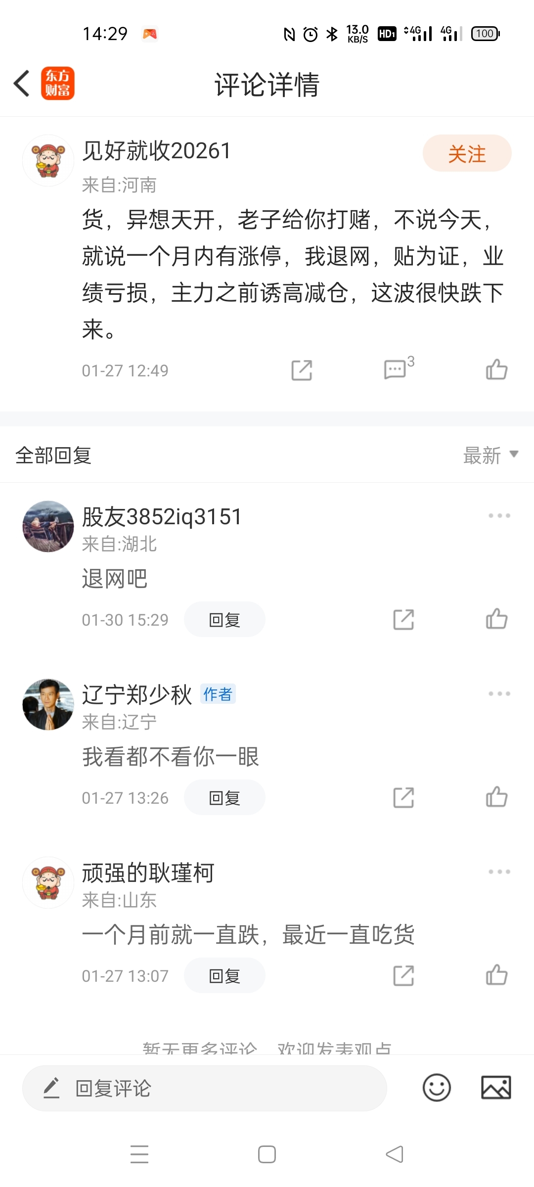 温馨提示: 1.根据《证券法》规定,禁止编造、传播虚假信息或者误导性信息,扰乱证券市场;2.用户在本社区发表的所有资料、言论等仅代表个人观点,与本网站立场无关,不对您构成任何投资建议。用户应基于自己的独立判断,自行决定证券投资并承担相应风险。《东方财富社区管理规定》