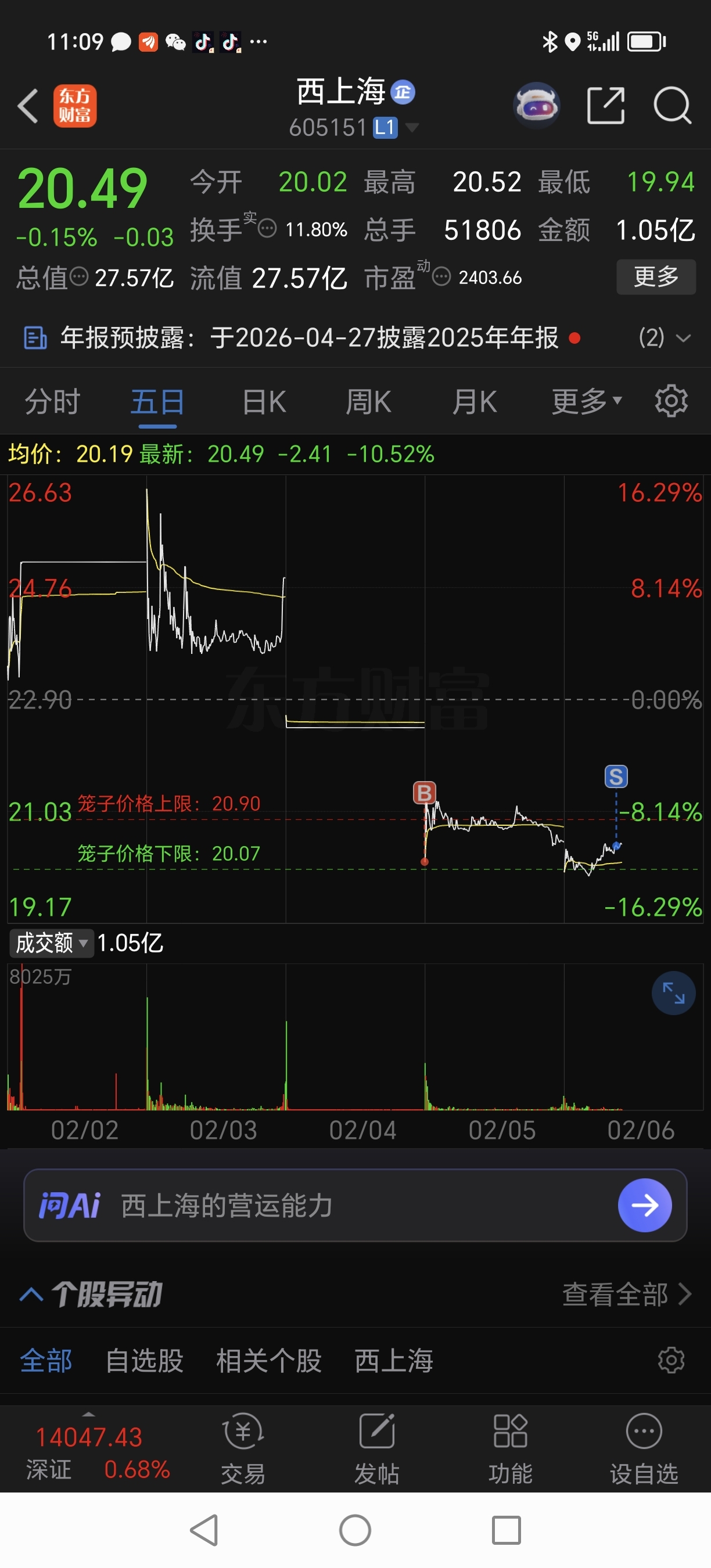 $西上海(SH605151)$ 太狗了,走了