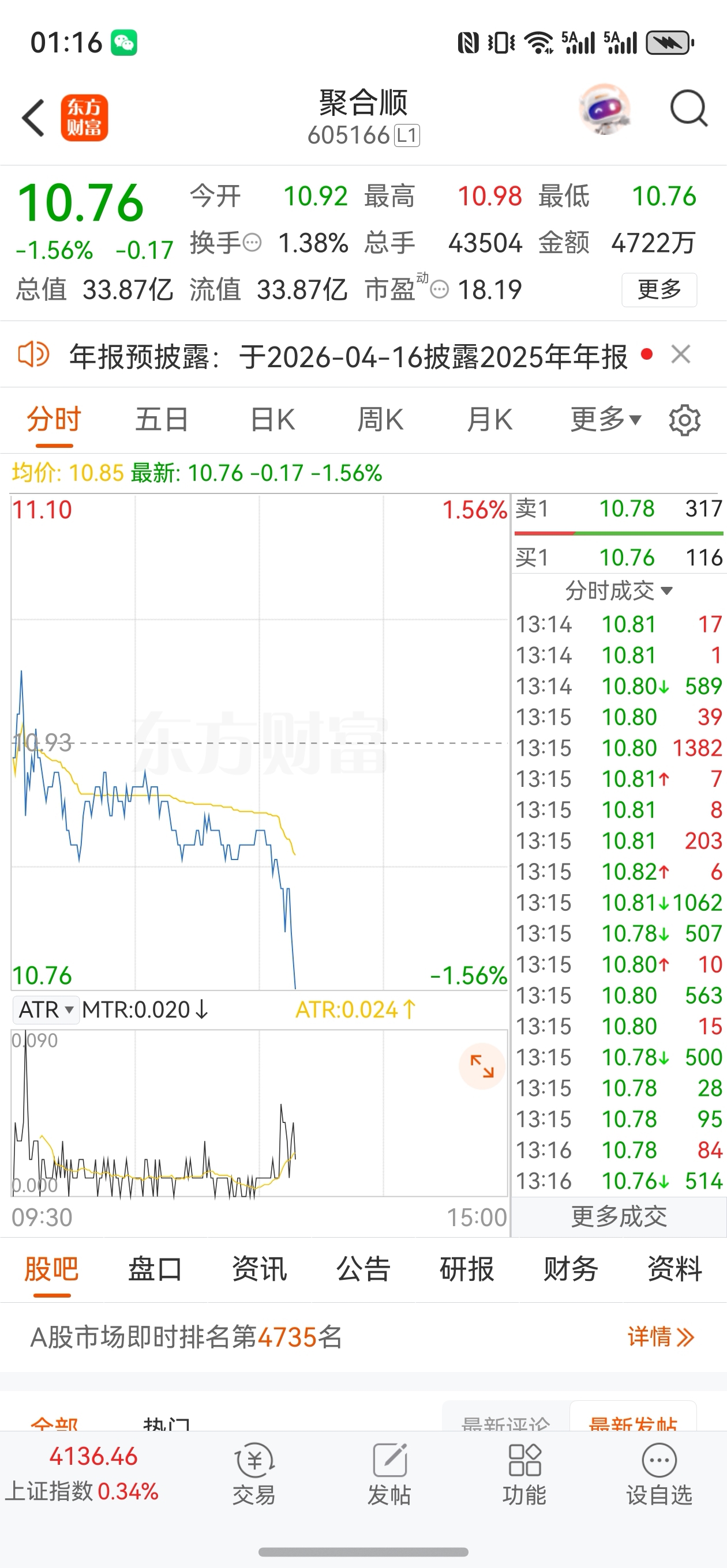 $聚合顺(SH605166)$ 全是大单的砸盘。