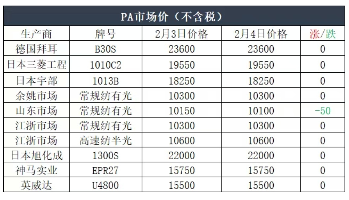今日现货价格有一定下降,总体不影响PA6的整体走势。