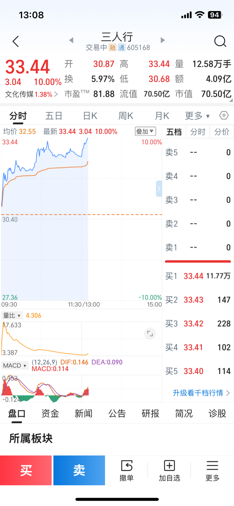 $三人行(SH605168)$ 终于放量,开不开办已经不重要了,趋势反转,持股待涨,可惜买少了,刚开始建仓