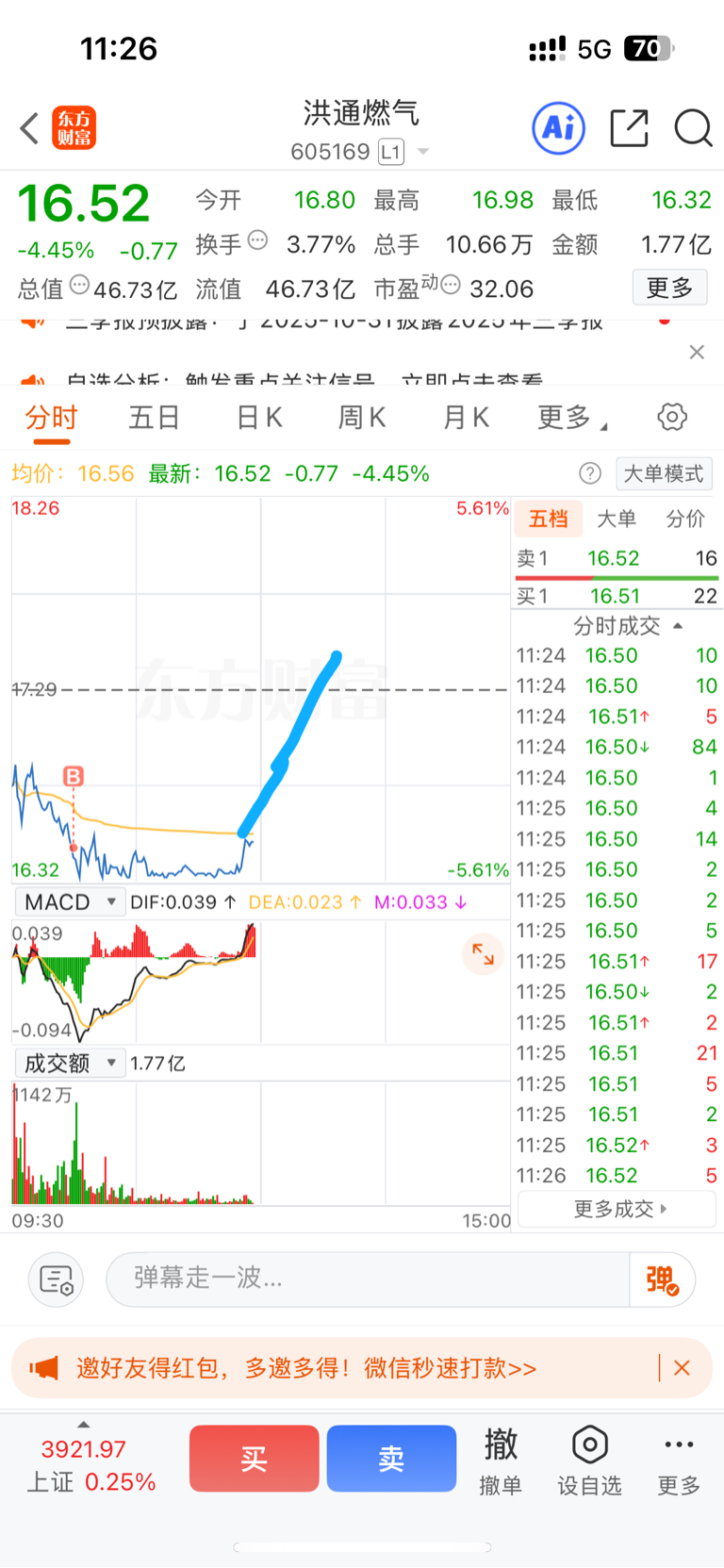 $洪通燃气(SH605169)$