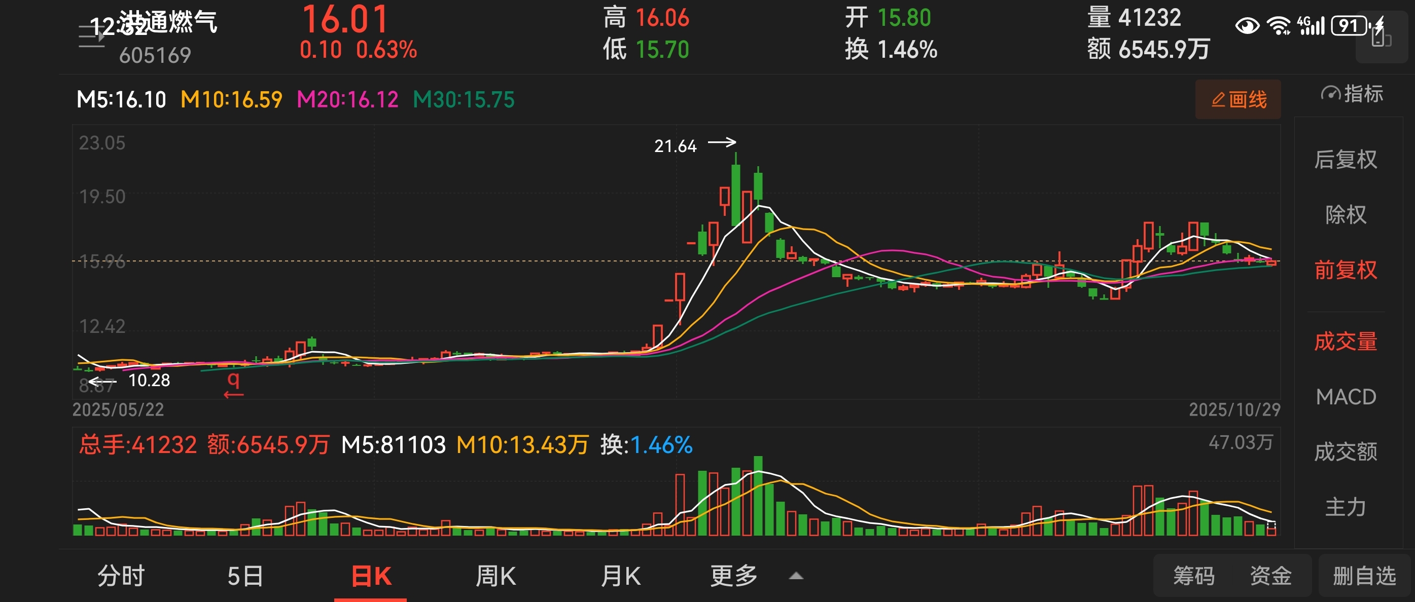 $洪通燃气(SH605169)$ 调整差不多了,闭眼开整吧