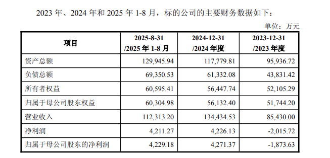 财务指标方面,2023年、2024年、2025年1—8月,嘉合劲威的营业收入分别为8.54亿元、13.44亿元、11.23亿元。2024年归母净利润为4271.37万元;2025年1—8月,归母净利润达到4229.18万元。